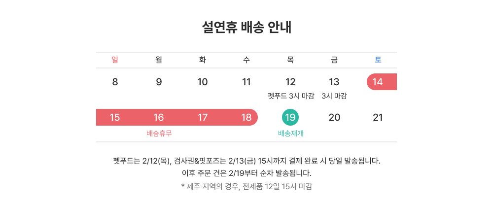 | 반품/교환 안내 | 제품 수령 후 7일 이내의 미개봉 상품은 교환 및 반품이 가능합니다. 단순 변심에 의한 교환 및 반품은 왕복 배송비가 부과됩니다. 단, 더클린펫푸드 신선식품의 경우 반품 후 재판매가 불가하므로 단순변심에 의한 교환 환불이 불가합니다. 세트상품의 부분 반품의 경우 총 결제금액에서 이용 상품의 정가와 반품배송비를 제외한 나머지 금액이 환불됩니다. 퓨어마그 불만족시 100% 환불 워런티 정책은 해당 기간 내에 별도의 규정을 따릅니다. 자세한 내용은 공지사항을 확인해주세요. |