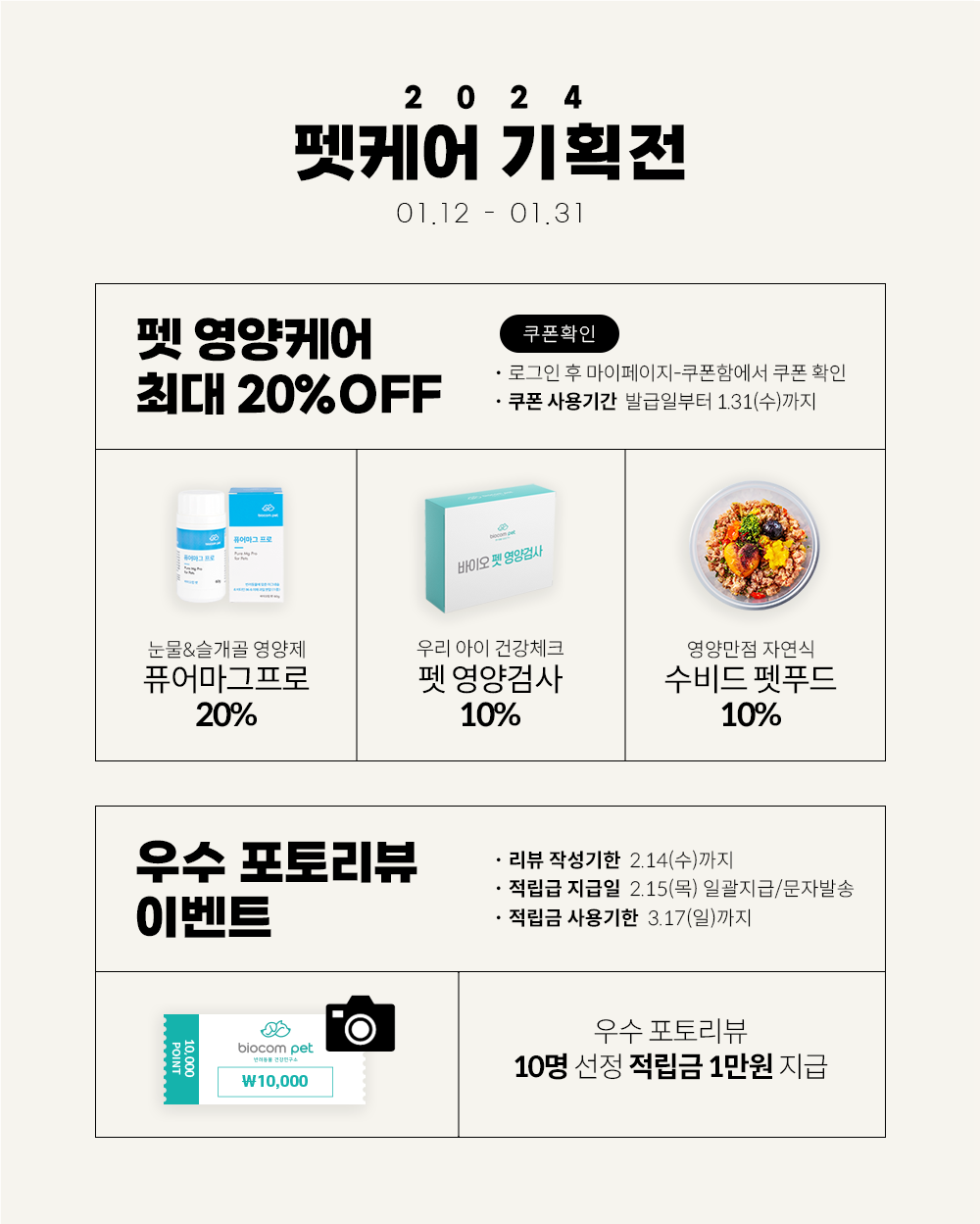 | 반품/교환 안내 | 제품 수령 후 7일 이내의 미개봉 상품은 교환 및 반품이 가능합니다. 단순 변심에 의한 교환 및 반품은 왕복 배송비가 부과됩니다. 단, 더클린펫푸드 신선식품의 경우 반품 후 재판매가 불가하므로 단순변심에 의한 교환 환불이 불가합니다. 세트상품의 부분 반품의 경우 총 결제금액에서 이용 상품의 정가와 반품배송비를 제외한 나머지 금액이 환불됩니다. 퓨어마그 불만족시 100% 환불 워런티 정책은 해당 기간 내에 별도의 규정을 따릅니다. 자세한 내용은 공지사항을 확인해주세요. |